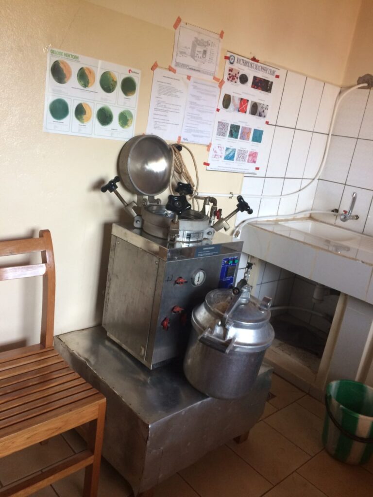Lors des précédentes missions, nous nous sommes attachées à améliorer les « bonnes pratiques » dans les examens de routine, à perfectionner les connaissances théoriques et pratiques des techniciens dans toutes les disciplines, à mettre en place de nouveaux examens particulièrement en bactériologie et développer l’assurance qualité.